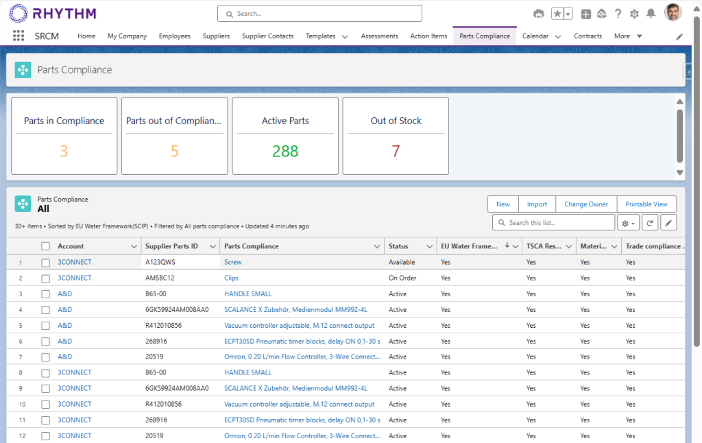 Rhythm’s Parts & Part compliance module will help you track product compliance requirements.