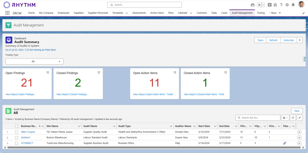 Rhythm’s Audit Management module will help you enhance product quality and track action items.