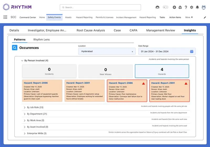 Rhythm platform serve as central hub for real-time risk intelligence, seamlessly integrating data from multiple systems to provide a 360-degree view of safety and compliance. Powered by AI-driven analytics, it identifies patterns, pinpoints areas of attention, and connects the dots across disparate data sources. With actionable insights, automated alerts, and intuitive dashboards, our Command Center empowers organizations to make proactive, data-driven decisions—enhancing workplace safety and minimizing risks before they escalate.